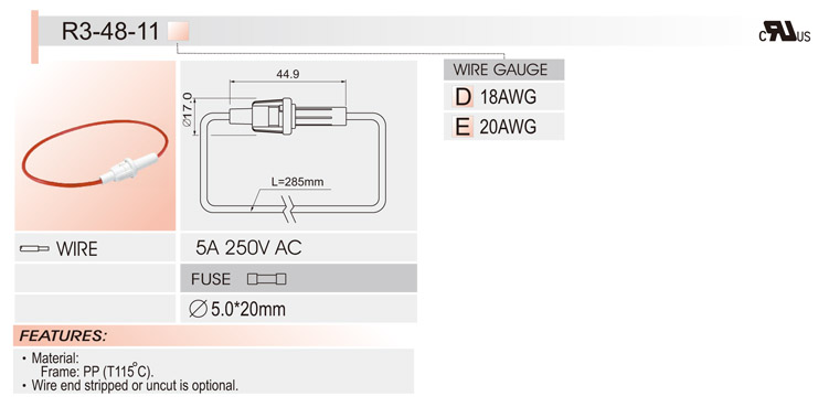 5*20拉線盒保險絲座 R3-48 UL CSA 10A250V
