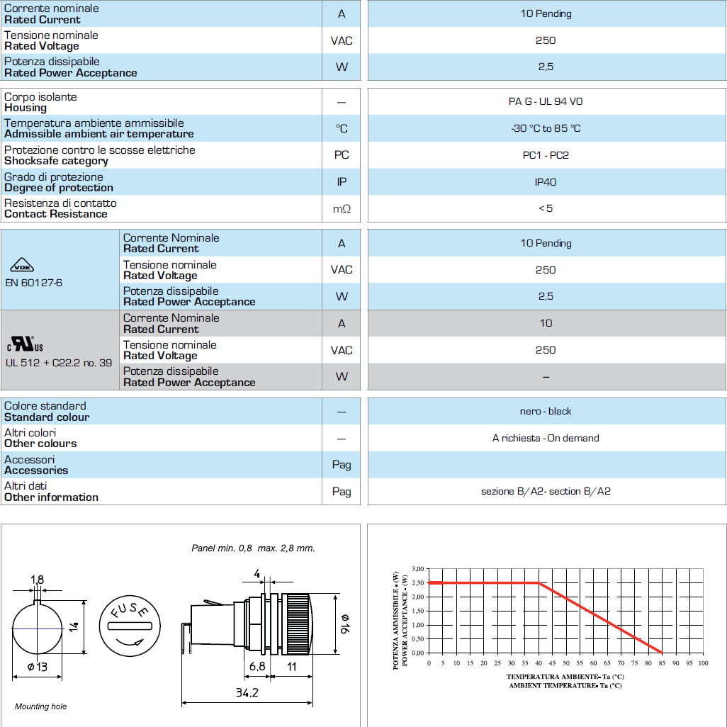 5*20 面板安裝保險絲座 PTF-30 S VDE UR CSA 10A250V