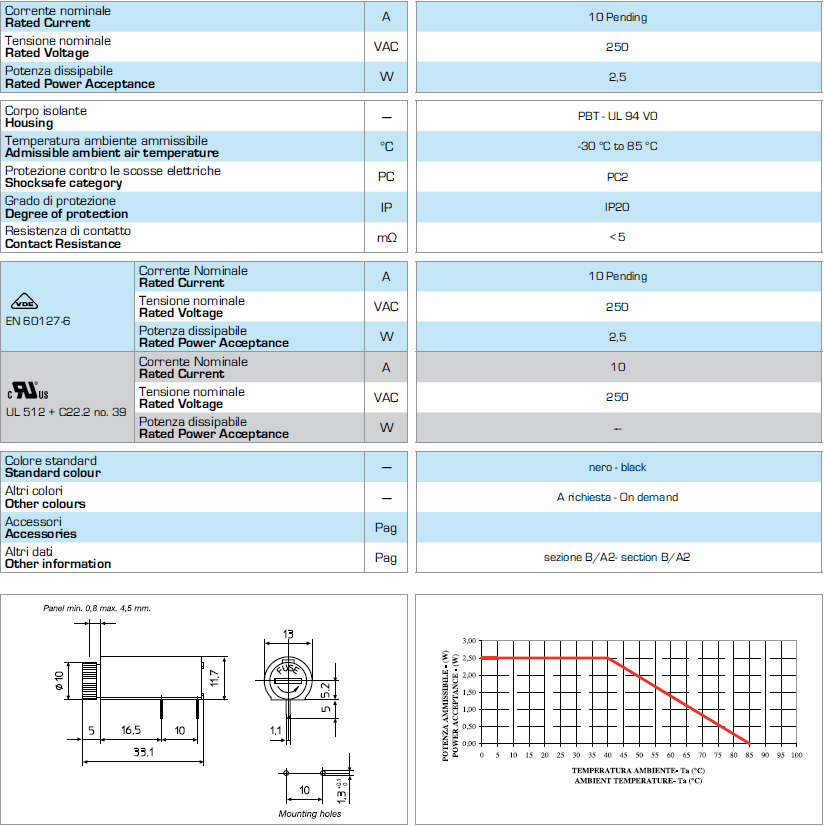 5*20 PCB 板安裝保險絲座 PTF-50 S VDE UR CSA 10A250V