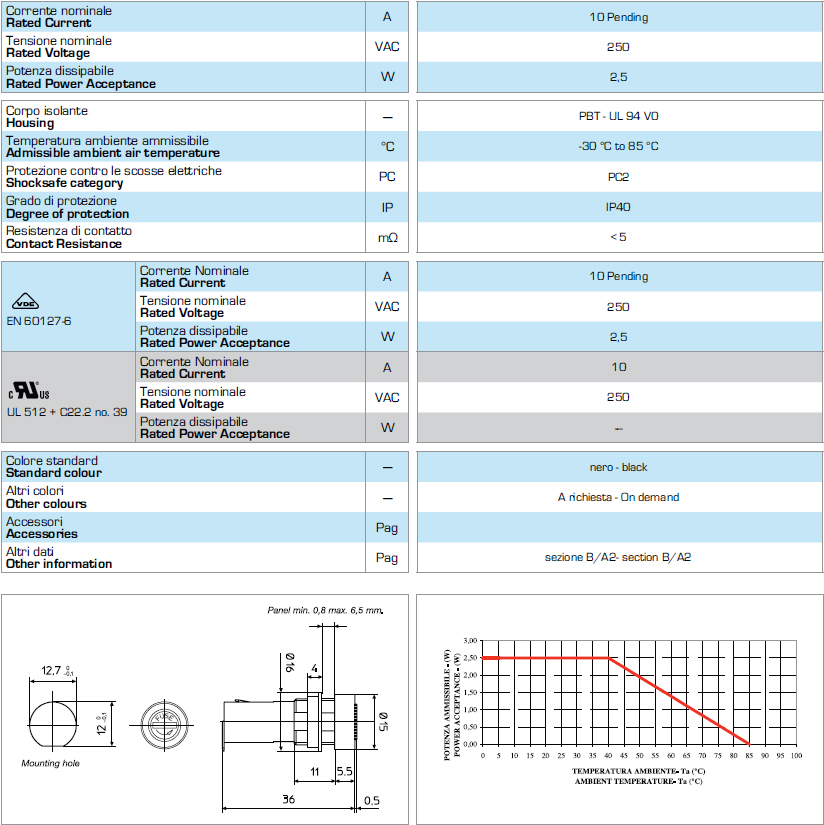 5*20 面板安裝保險(xiǎn)絲座 PTF-55 S VDE UR CSA 10A250V