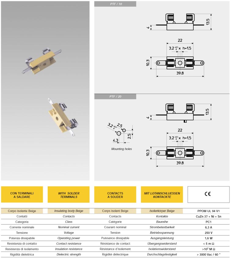 5*20 PCB板安裝 引線式 保險(xiǎn)絲座 PTF-10 VDE UL CSA 10A250V