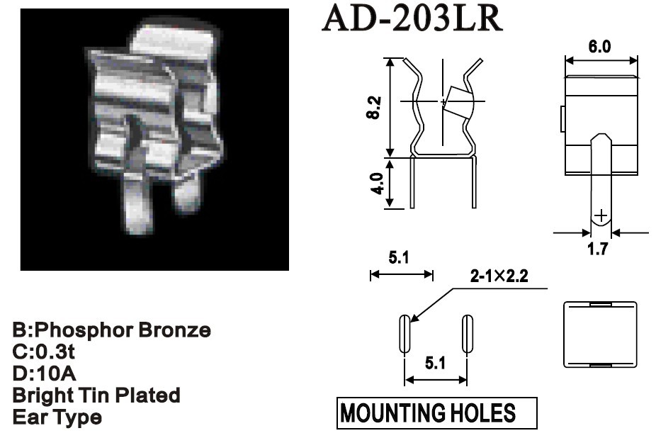 5*20 PCB板安裝保險(xiǎn)絲夾 AD-203LR ROHS