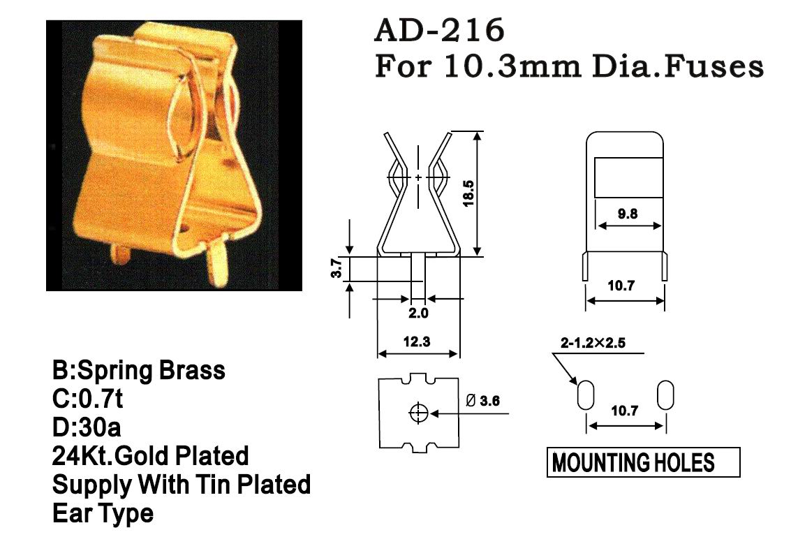 10*38 PCB板安裝保險絲夾 AD-216A/216E ROHS