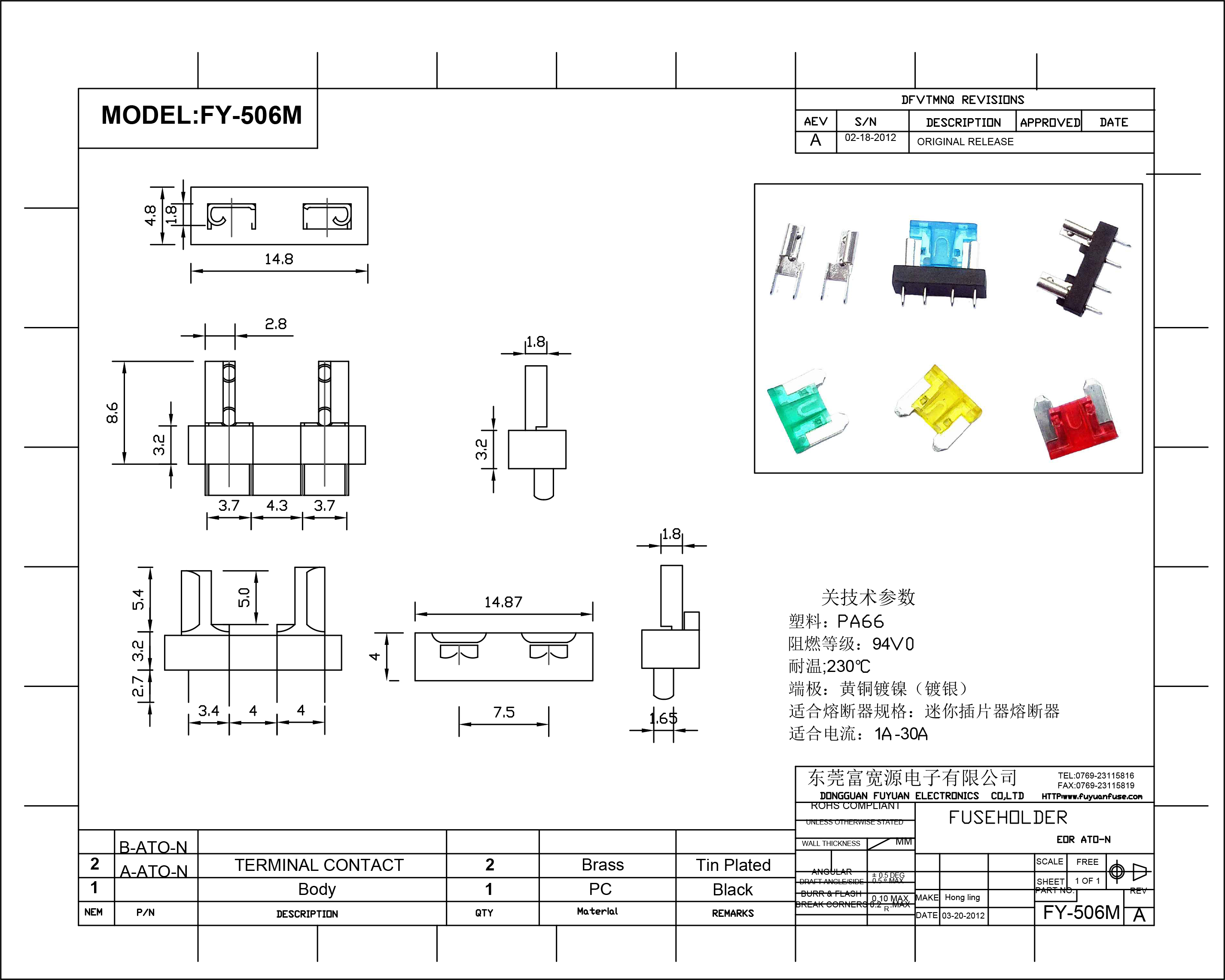 迷你插片保險絲座 FKY-506M,迷你平腳插片保險絲座,平腳插片保險絲座,迷你保險絲座