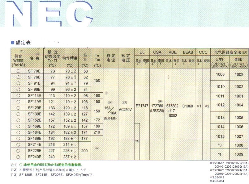 日本NEC溫度保險絲 SF系列