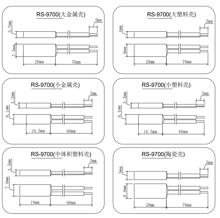注:1.導線長度可以根據(jù)用戶要求訂做;2.該產品外殼與產品電路中的底座支架直接接觸,故金屬外殼產品在接入電路時其外殼會帶電,所以在安裝時請使用出廠配套的絕緣套管。