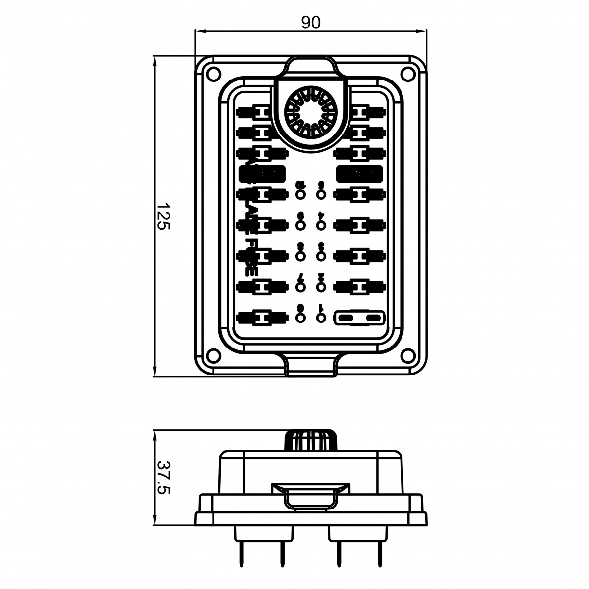1.適合船舶、房車(chē)或外部裝修類(lèi)型應(yīng)用的保險(xiǎn)絲盒,透明防護(hù)罩防水防塵、污垢進(jìn)入 2.保險(xiǎn)絲損壞時(shí),紅色 LED 指示, 負(fù)極端子臺(tái)為負(fù)極收集電路提供公共位置按下閂鎖即可輕鬆打開(kāi)