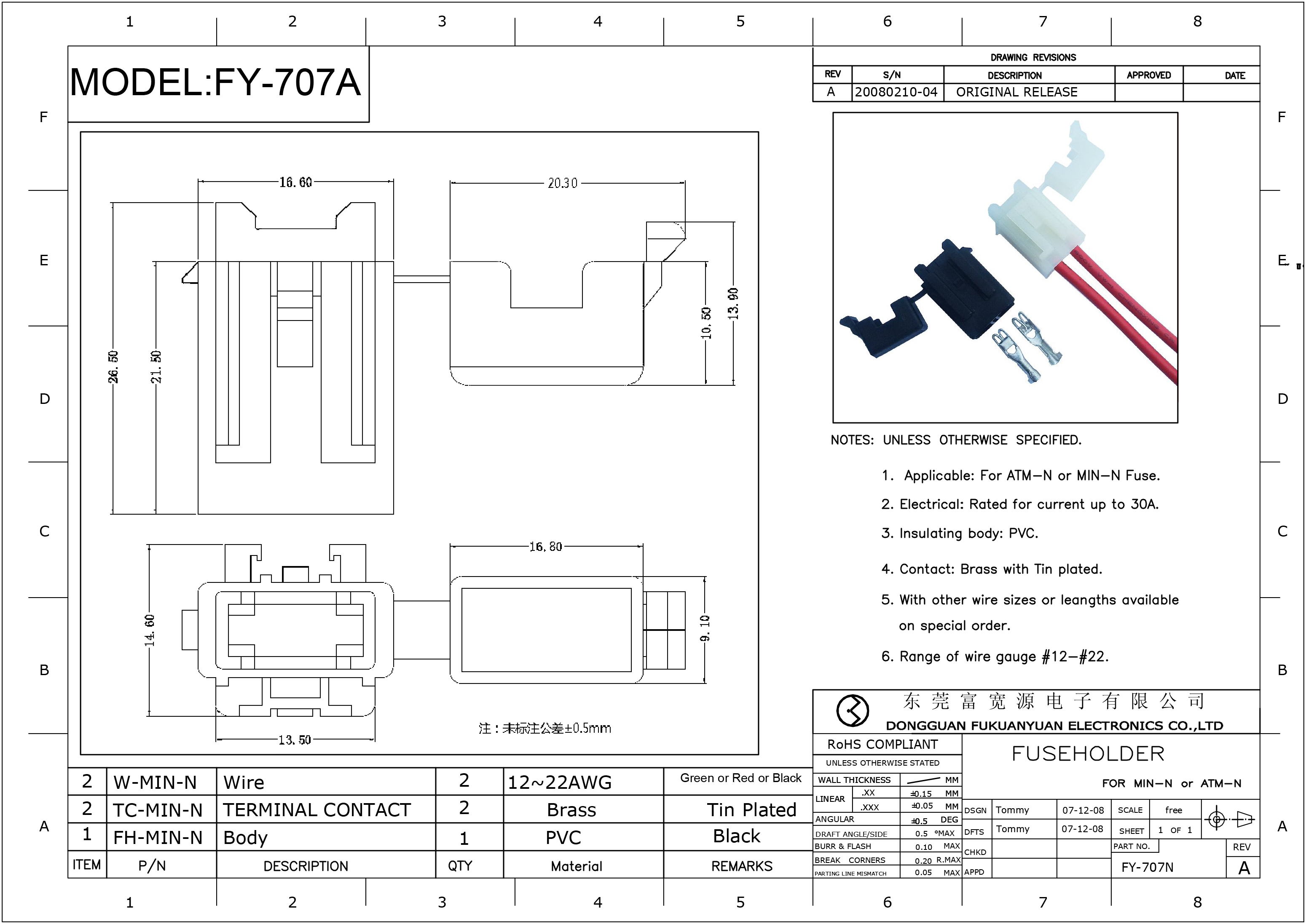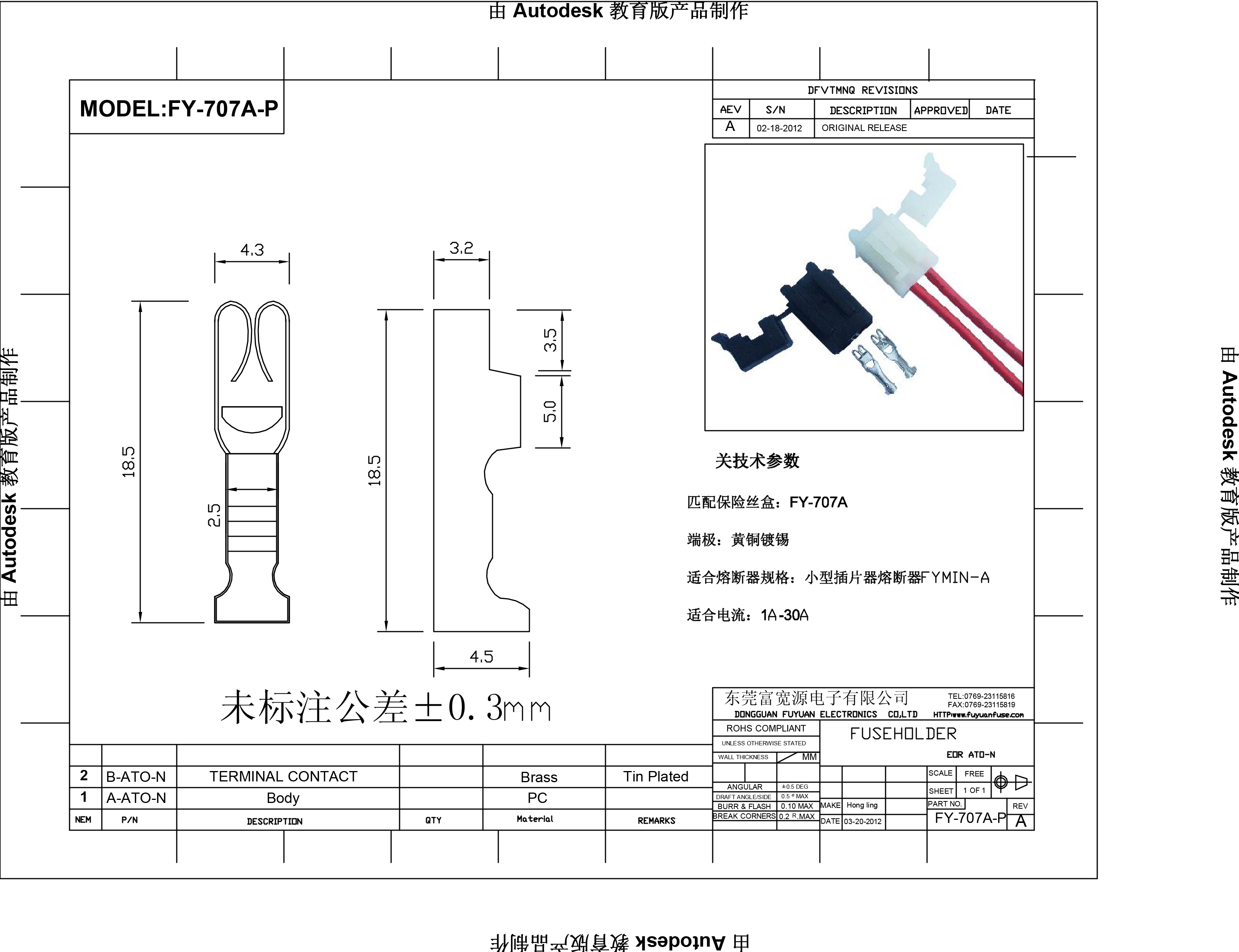 小號汽車插片保險絲座 FKY-707A 阻燃等級94V0