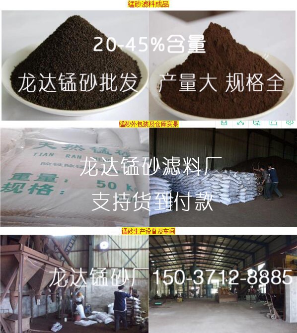 用于地下水除鐵和除錳的天然錳砂濾料,其錳的形態(tài)應(yīng)以氧化錳為主。既可用于地下水除鐵,又可用于地下水除錳,生產(chǎn)使用證明鞏義市龍達(dá)水處理材料有限公司生產(chǎn)錳砂濾料能獲得良好除鐵和除錳效果。
